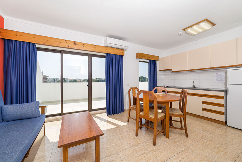 Os apartamentos T1 têm capacidade para quatro pessoas e dispõem de ar condicionado, televisão, utensílios básicos de cozinha, atoalhados e secador.
